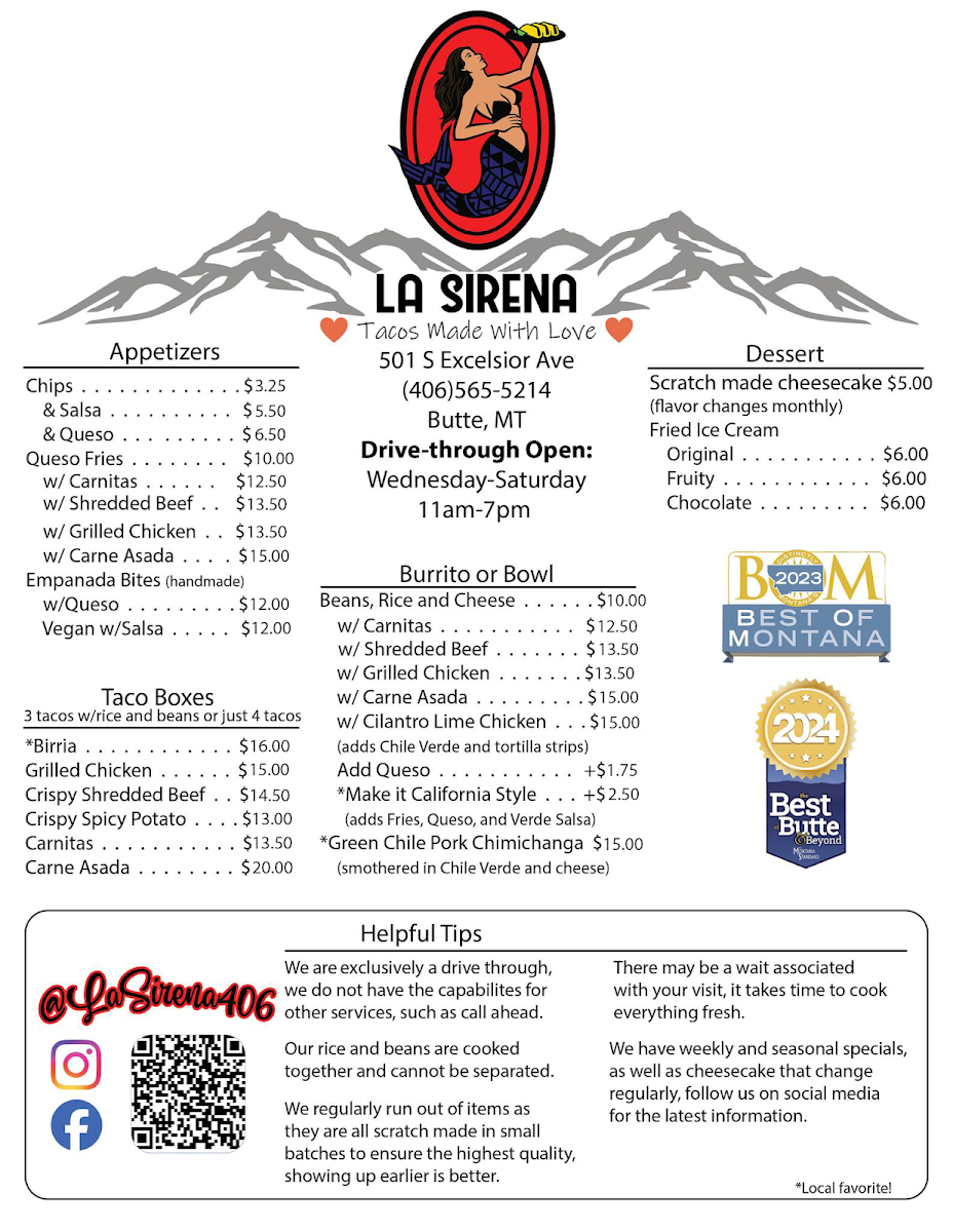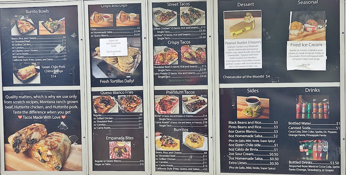 Nearly 1 lb of Green Chile Pork stuffed in a homemade flour tortilla and fried. Smothered in Chile Verde and topped with Monterey cheese!